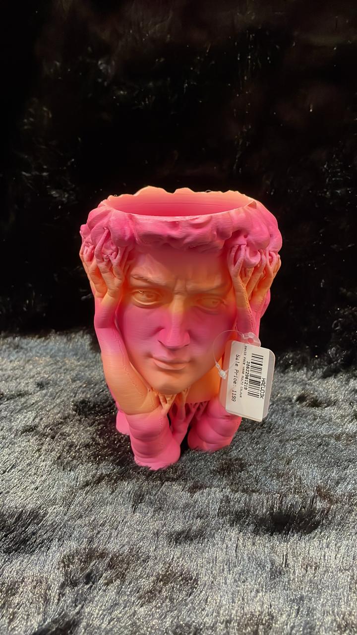 Elevate your space with the Chromatic Thinker Planter Trio, a set of three uniquely designed planters that blend art and functionality. Each planter features a contemplative thinker figure, crafted with a vibrant gradient color scheme—fiery orange-yellow, serene blue-purple, and bold pink-orange.