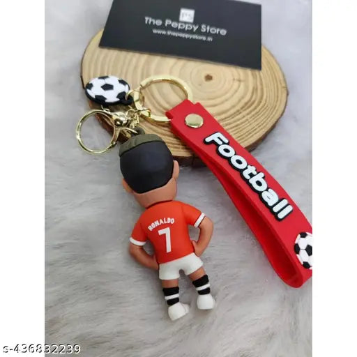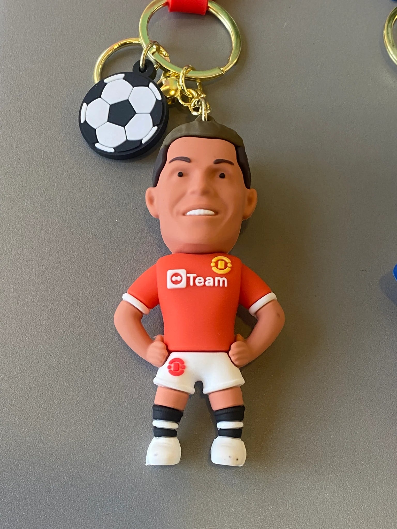A special keychain featuring Ronaldo in his Manchester United kit, celebrating his return to the club. The red strap adds a bold look, making it a great accessory for fans of CR7 and Manchester United.