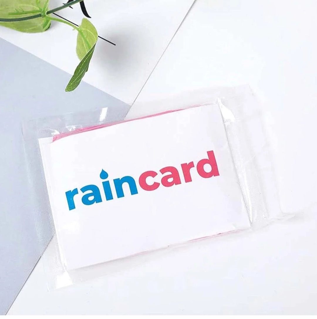 Rain cards are ultra-compact, disposable raincoats that fold into a credit card-sized pouch for pocket-friendly rain protection during travel or sudden showers. They provide head-to-knee coverage with water-resistant, reusable PVC material